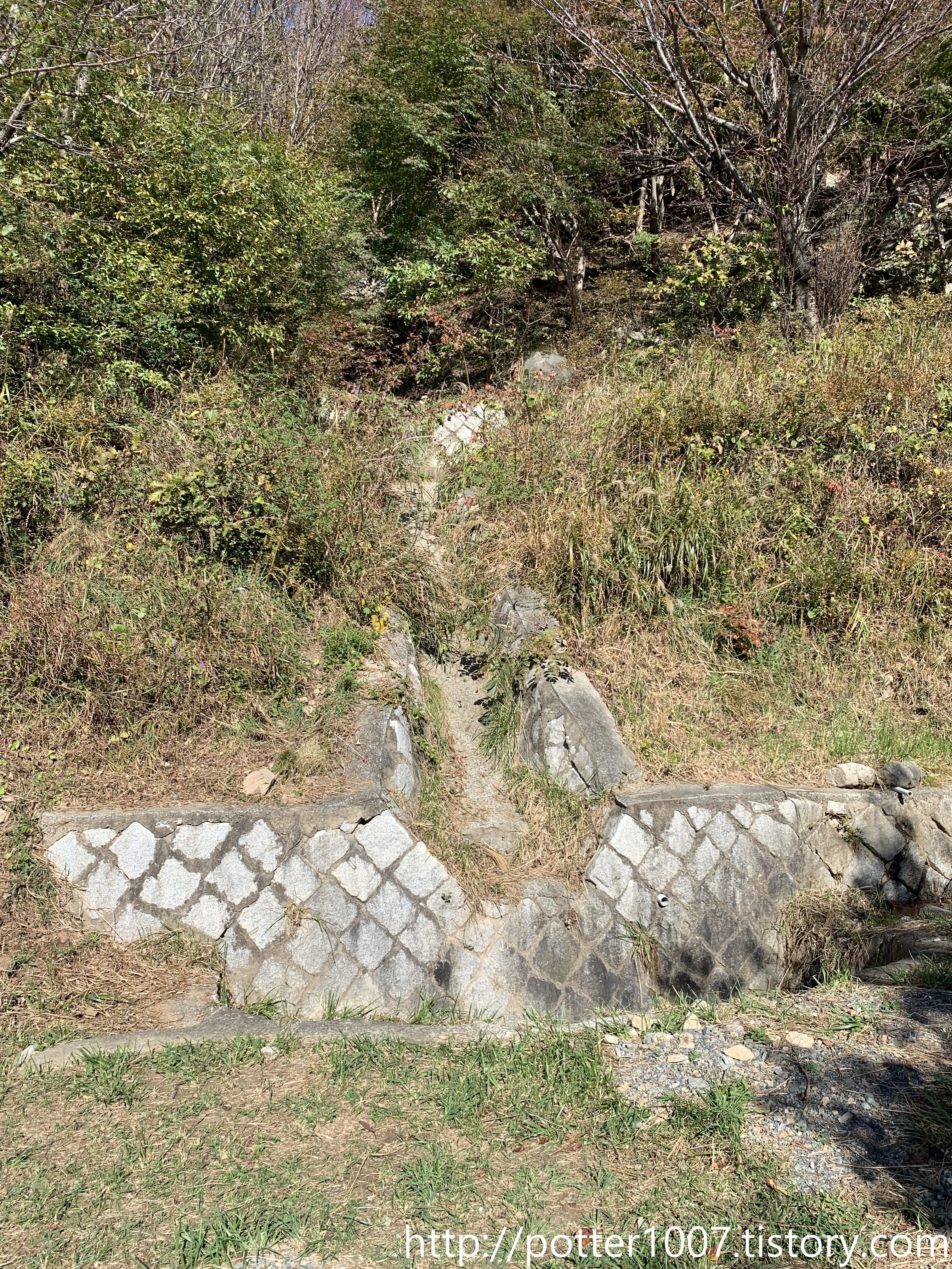 물론 하천을 따라 갈 등산로는 없으므로 그 구간에서 하천을 볼수는 없습니다. 애시당초 등산로가 산자락에서 튀어나온 부분쪽으로 올라갑니다.
