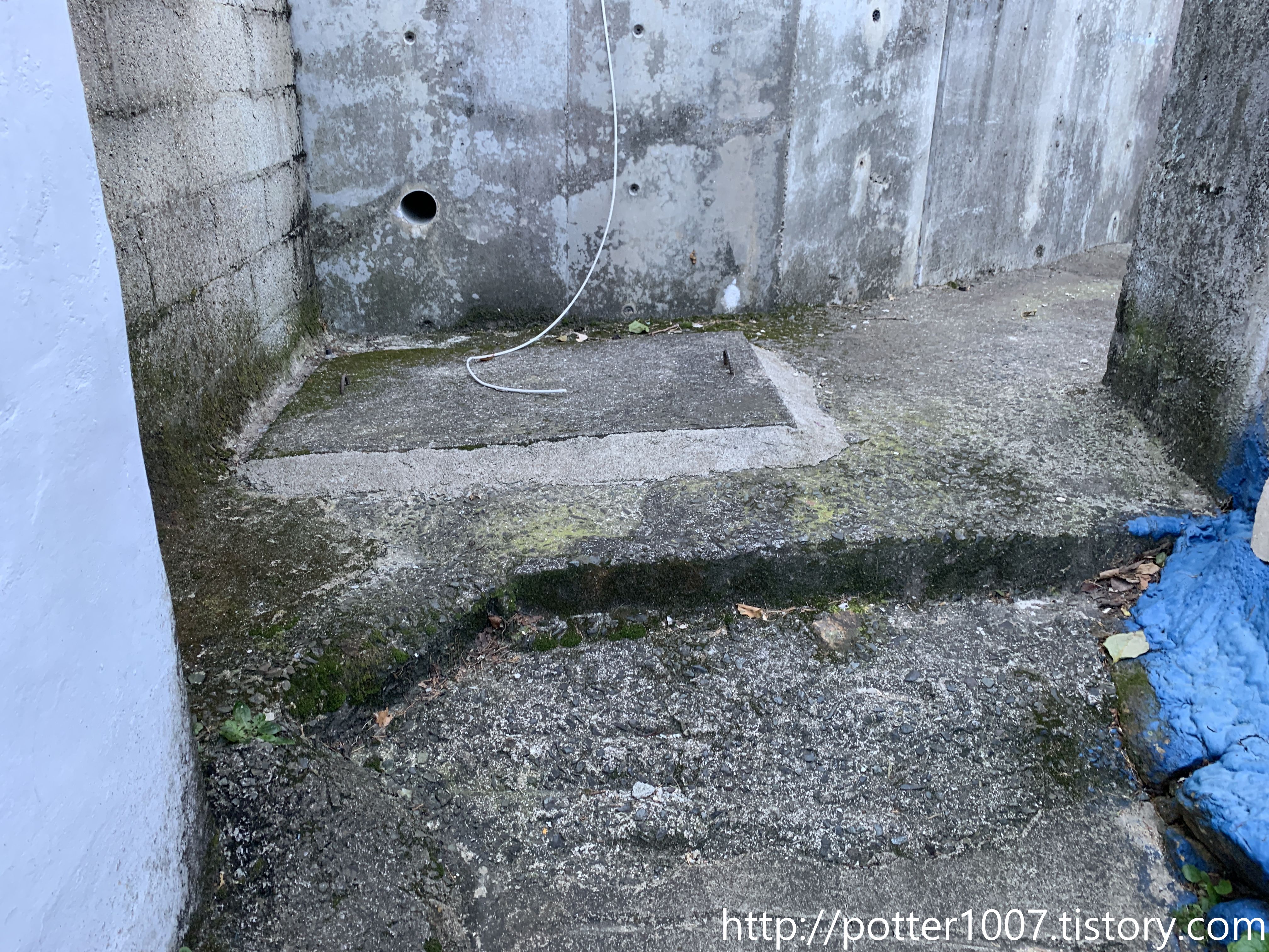 그러다가 어느정도 오면 지천이 있는쪽을 볼수 있는데 이렇게 콘크리트로 만든 사각맨홀이 있습니다.