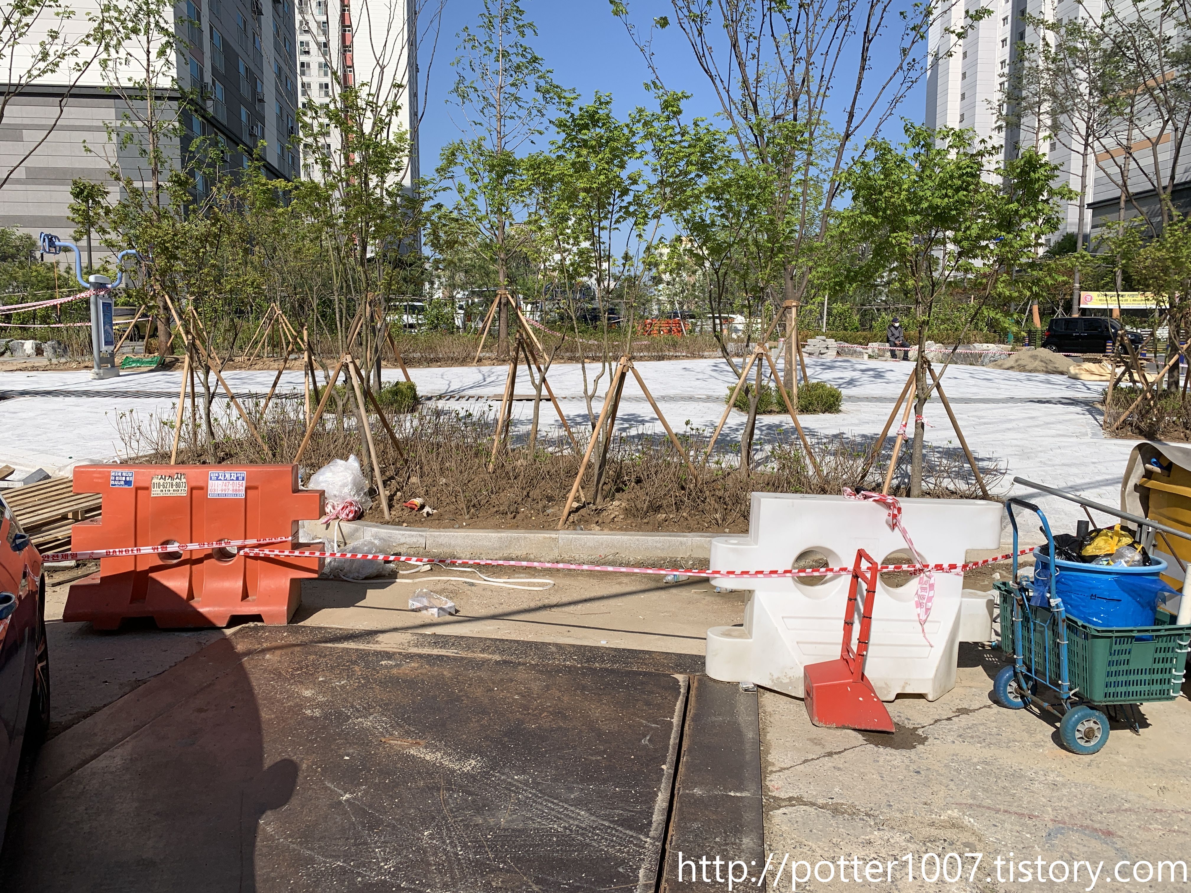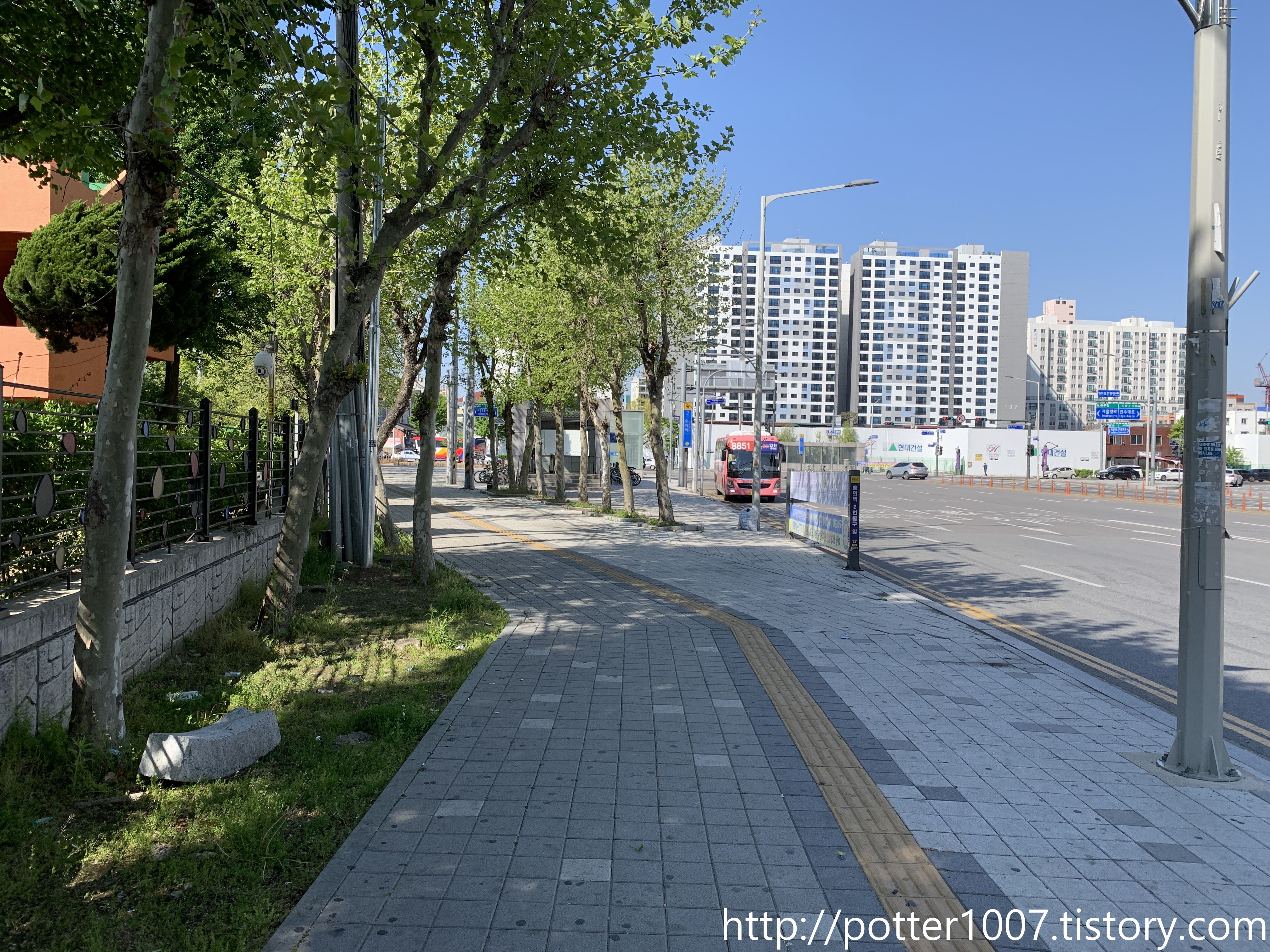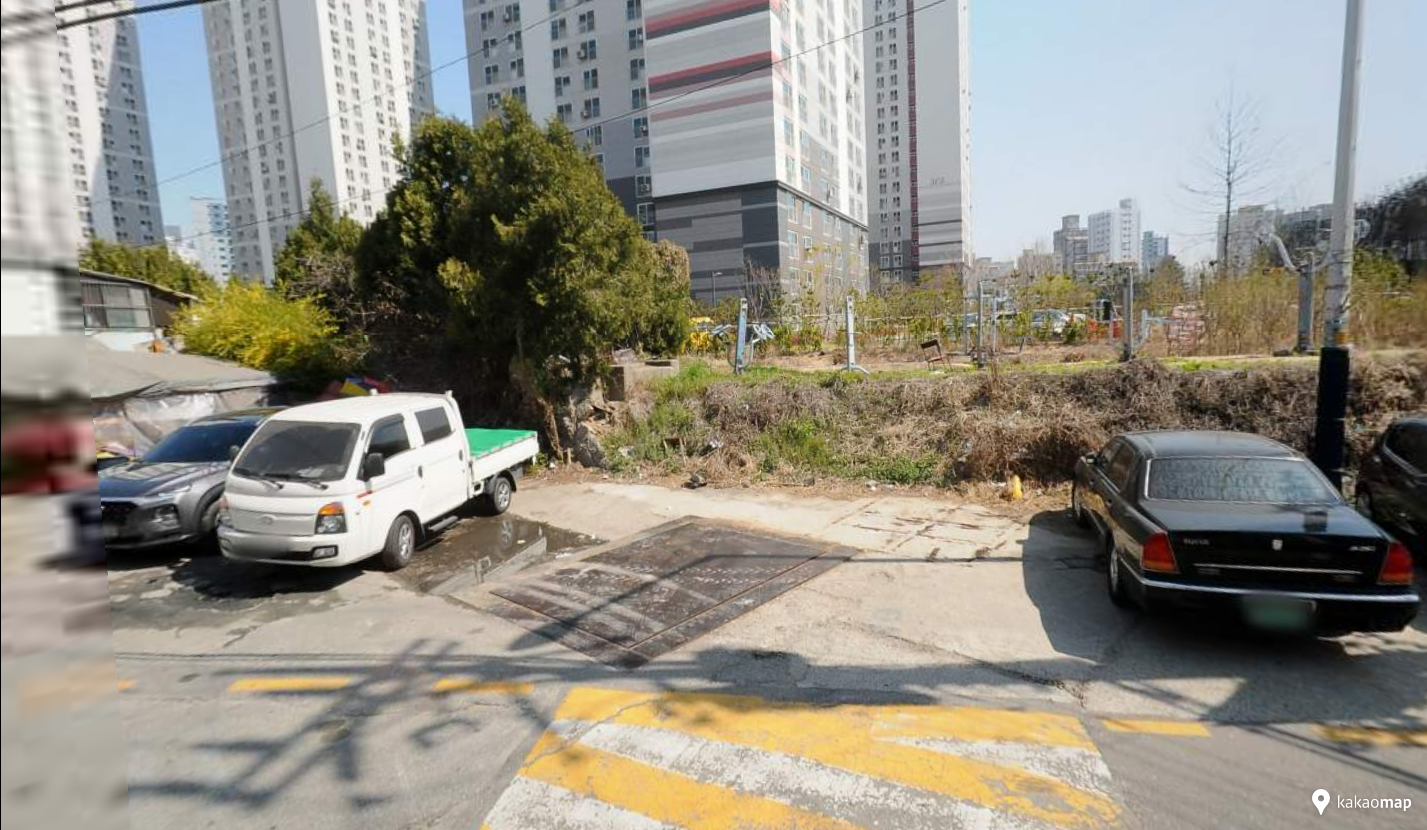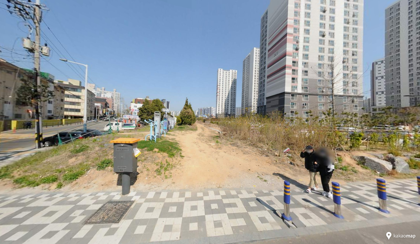 아파트와 이쪽 사이에는 공간이 있습니다. 과거 협궤철도 수인선이 지나갔고, 폐선후 동양화학선이 지나갔던 자리이며, 현재는 동양화학선이 폐선되고 지하로 전철 수인선이 지나가는 자리입니다. 이때문에 과거에는 이곳에 동양화학선이 용현천을 건너는 철교도 있었습니다.(교각없는 단경간철교)