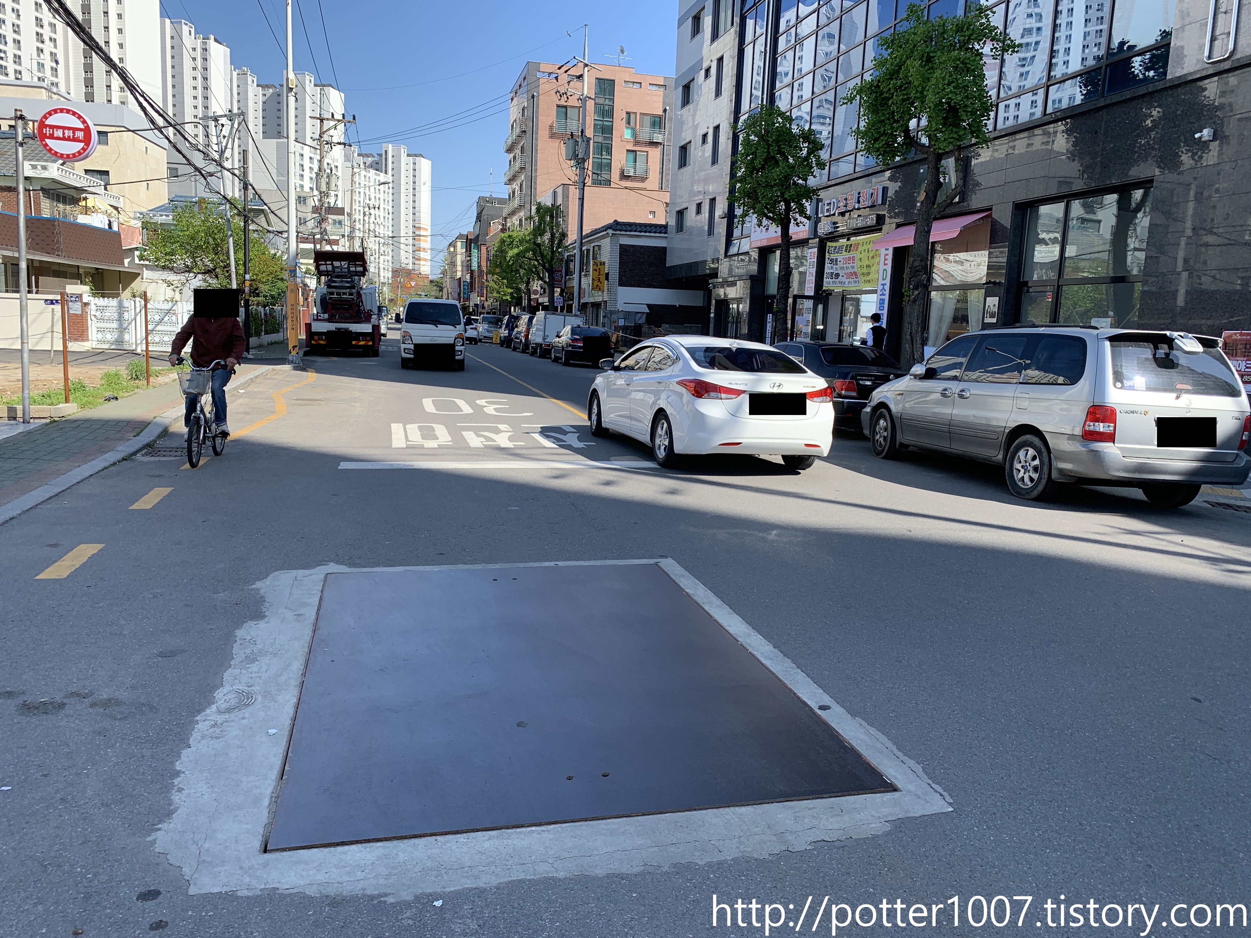 복개부를 주차장으로 쓰고 있습니다. 이구간은 최소 4열박스로 추정됩니다.