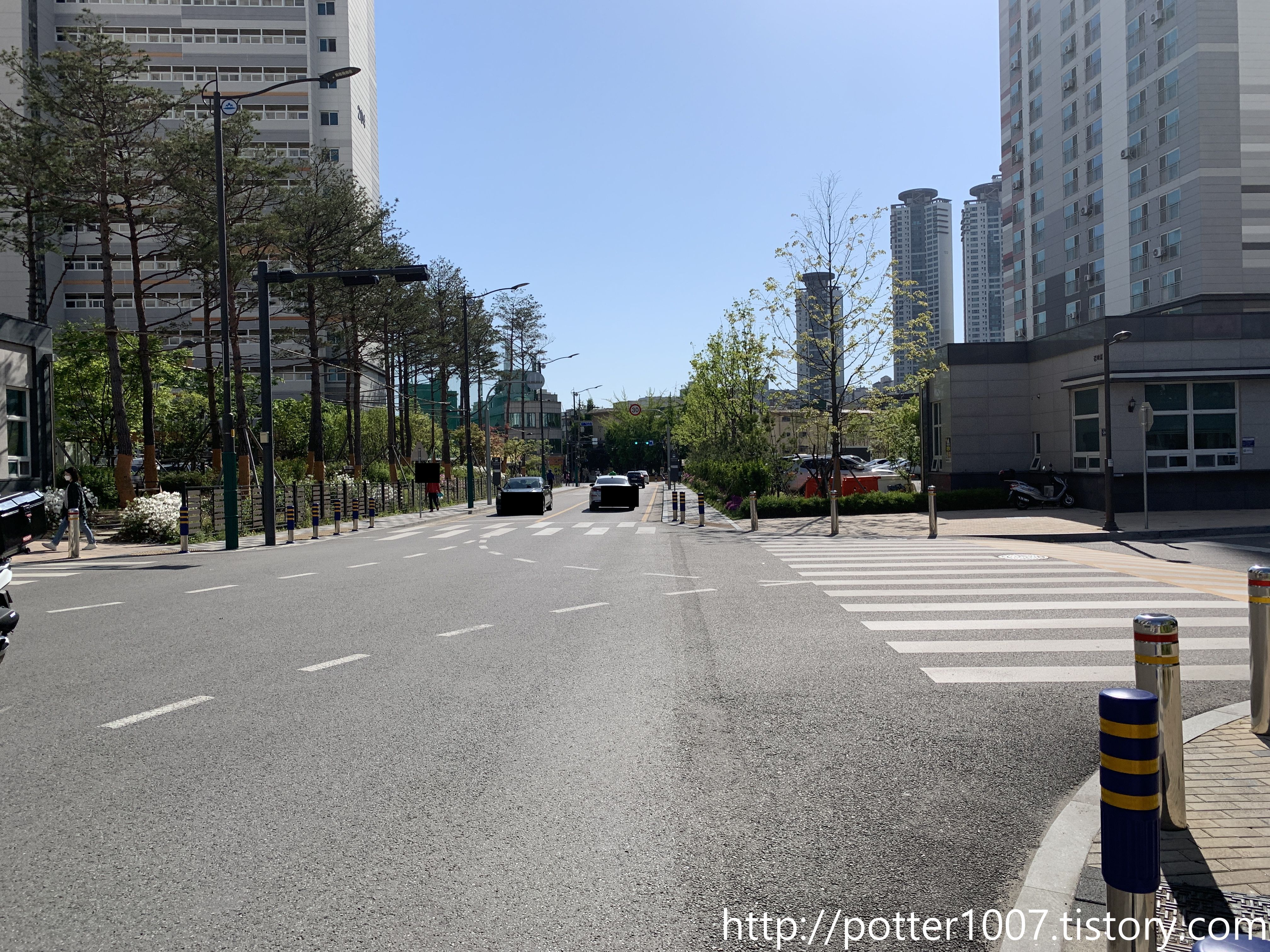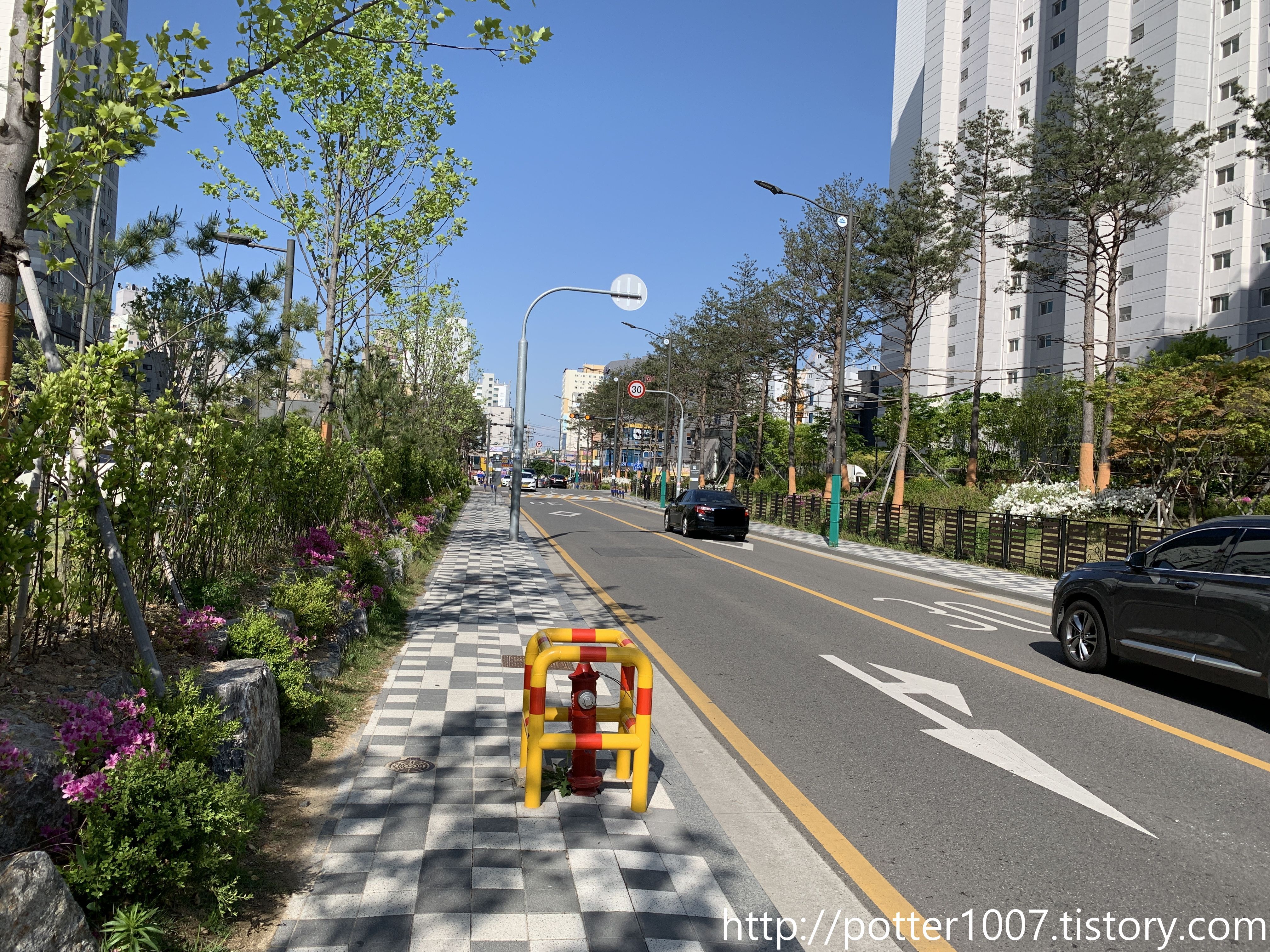 아파트 진입로와의 사거리에서 하류방향으로 찍은 사진