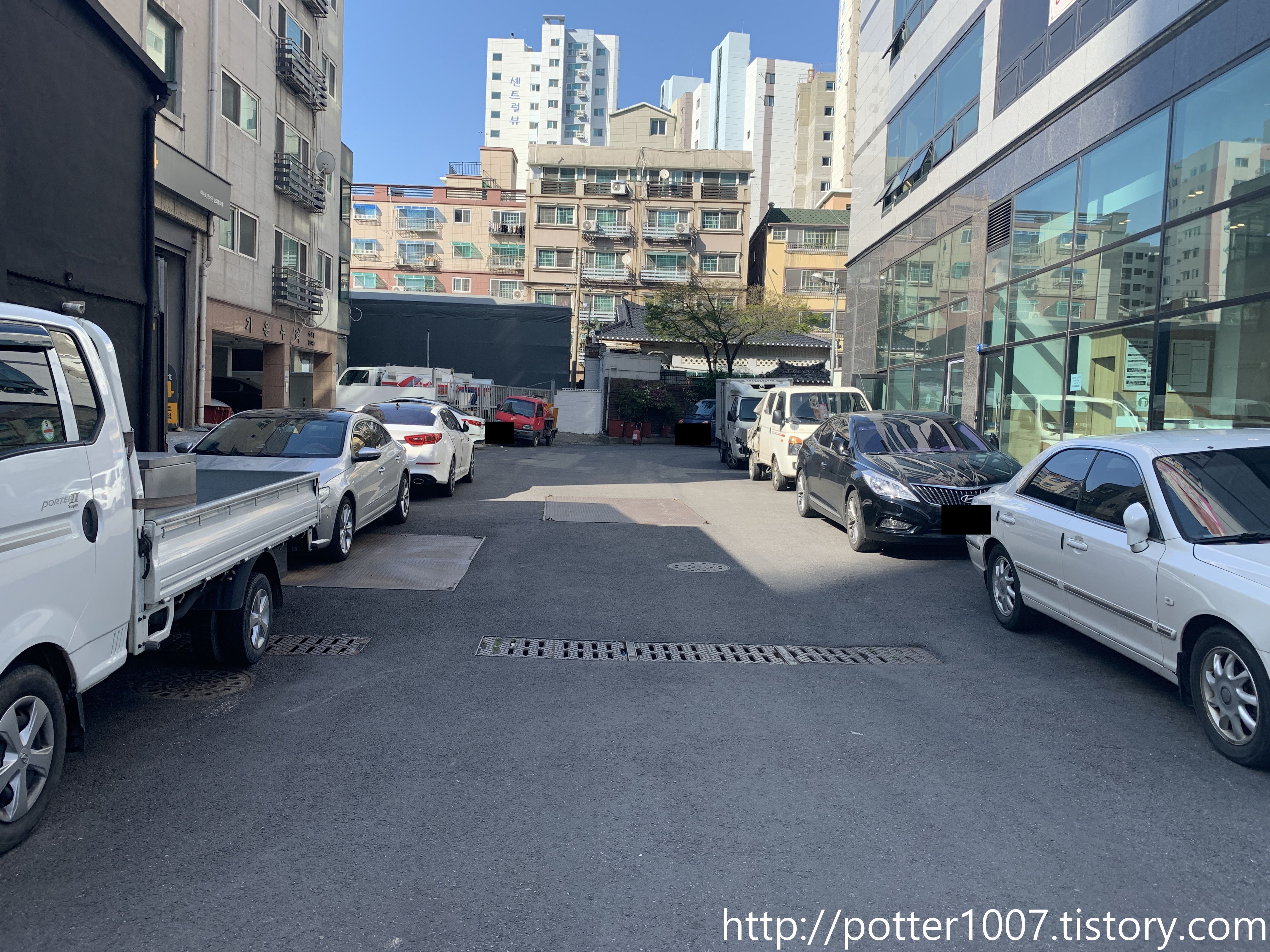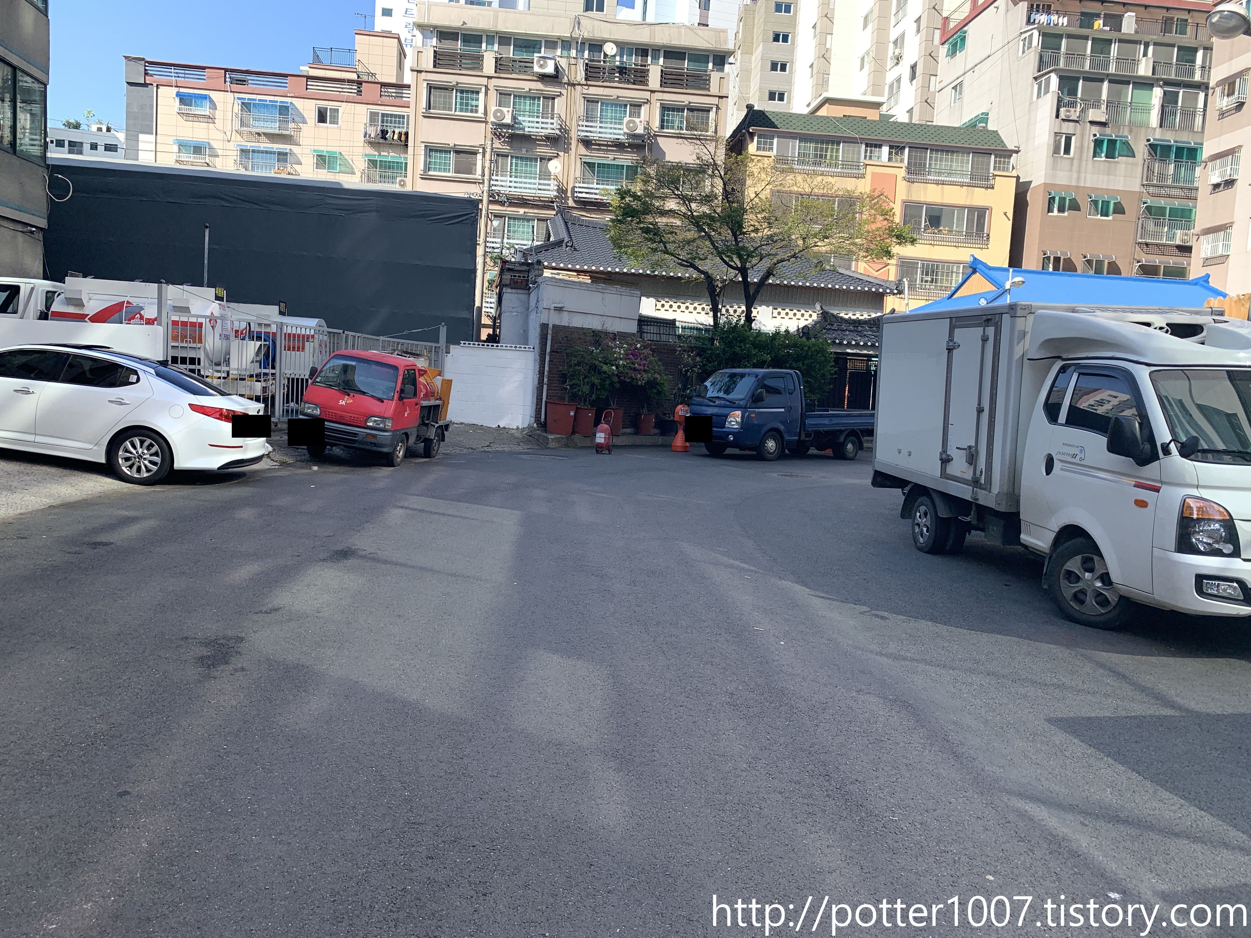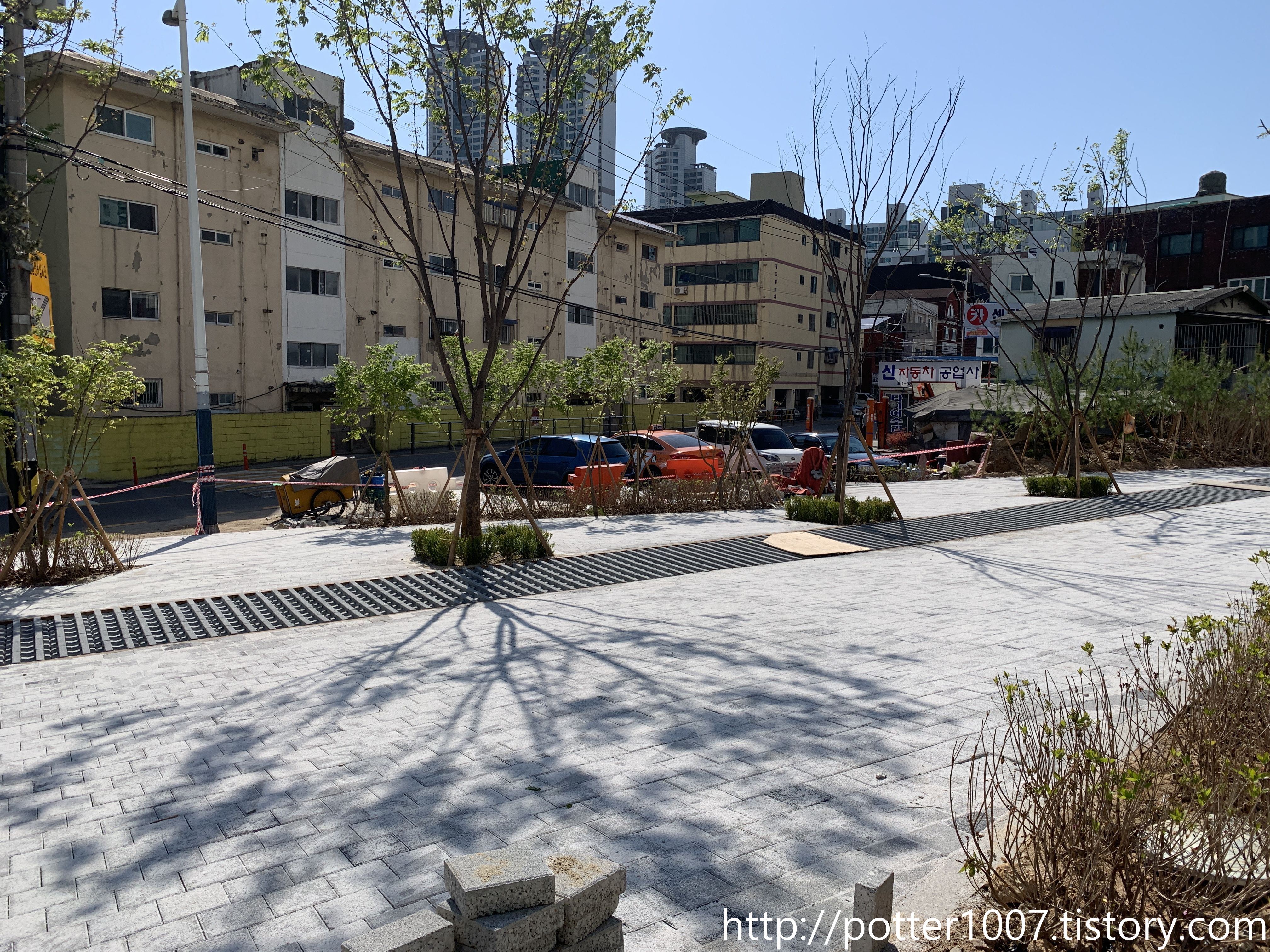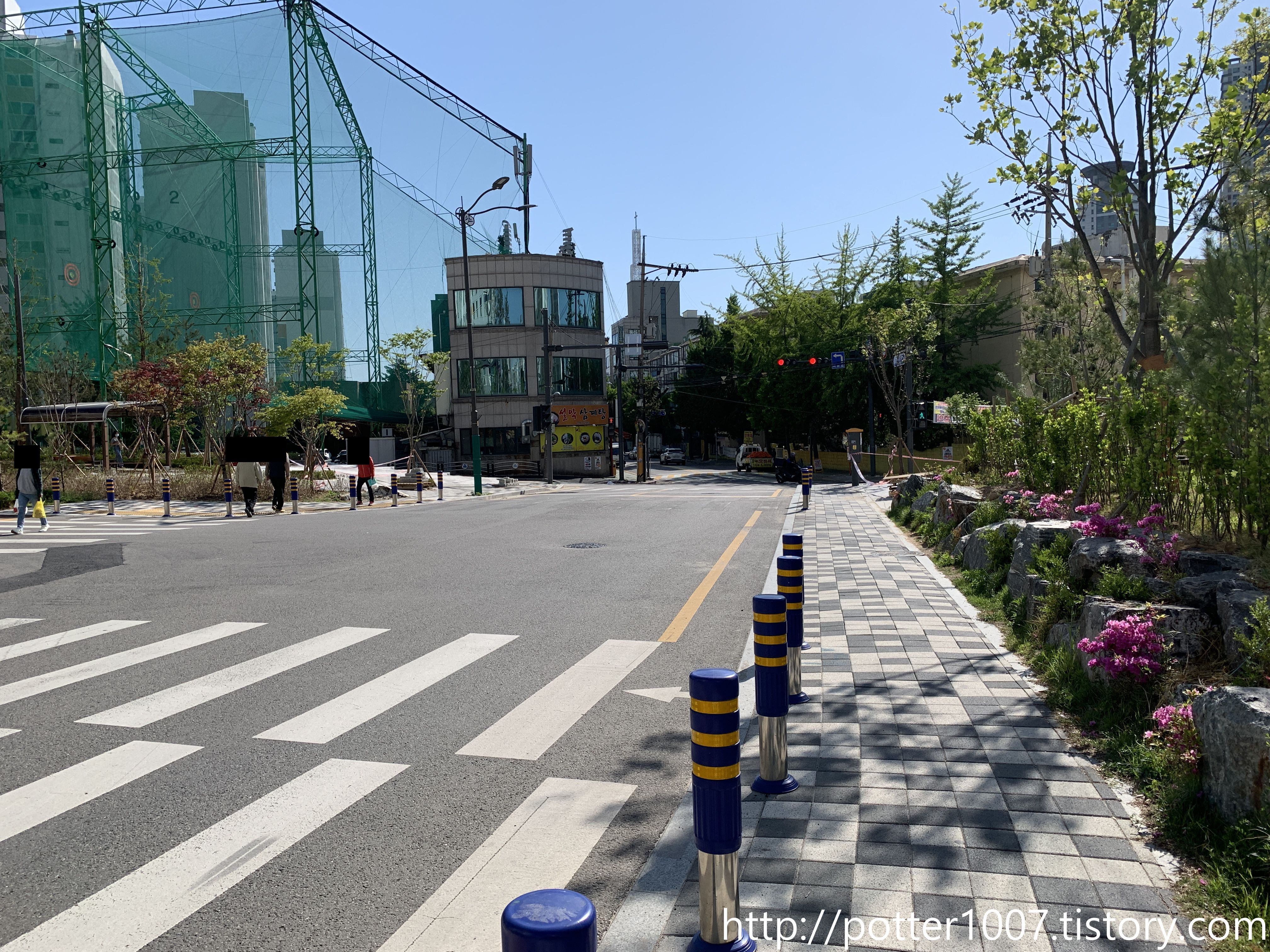 하지만 현재는 하천부지에 아파트가 들어서 있으므로, 박스를 우회하여 길쪽으로 내었습니다.