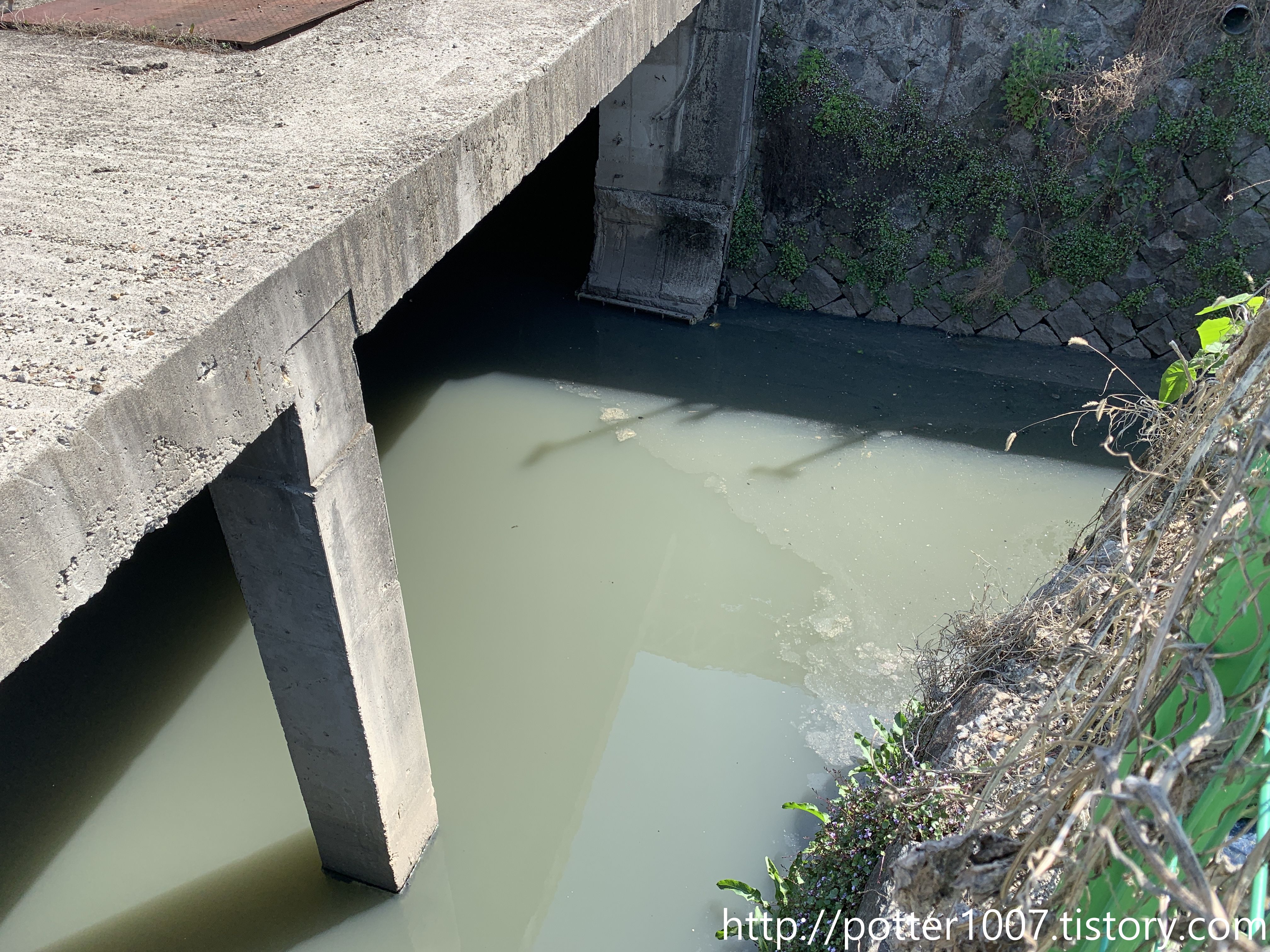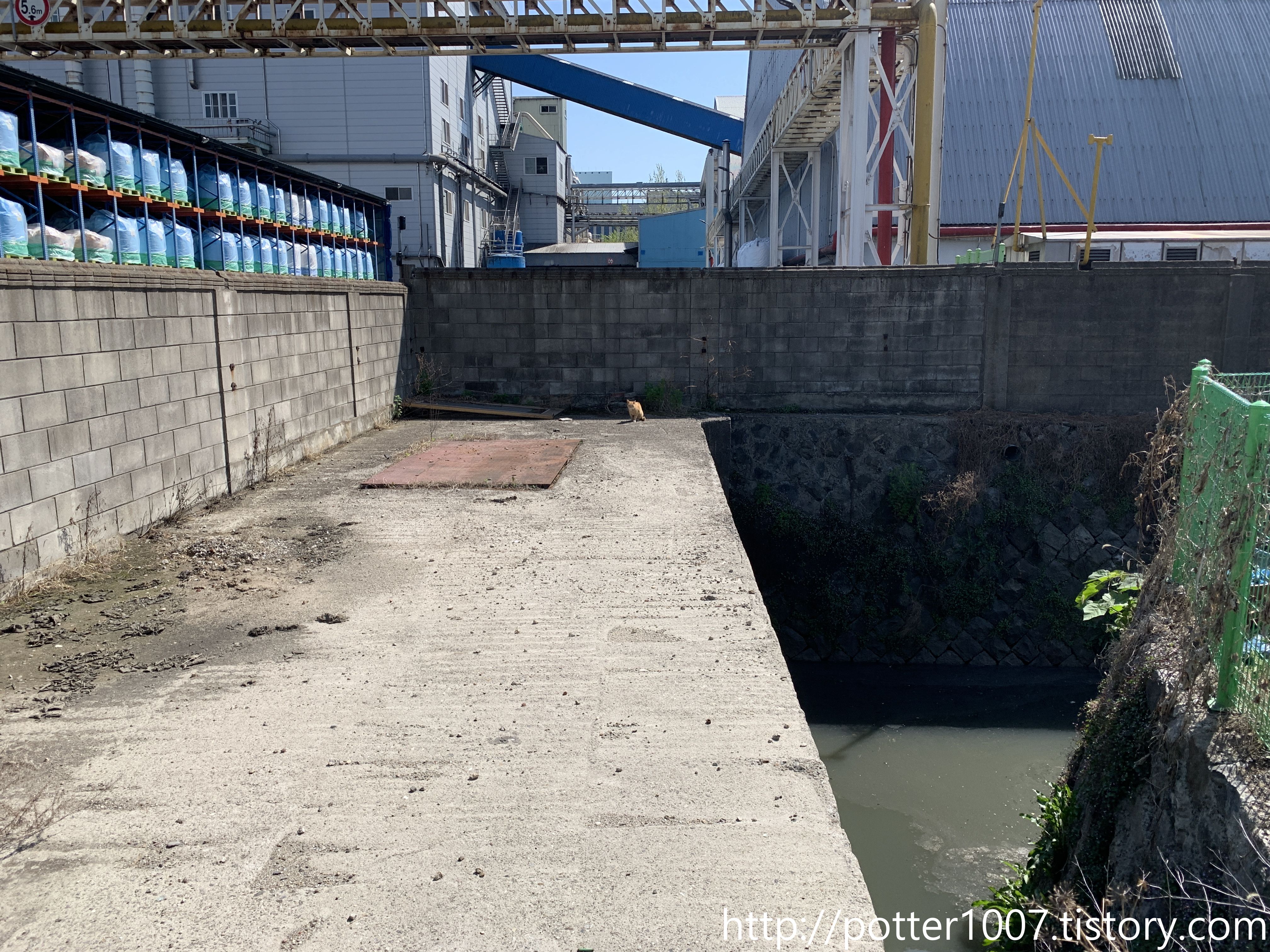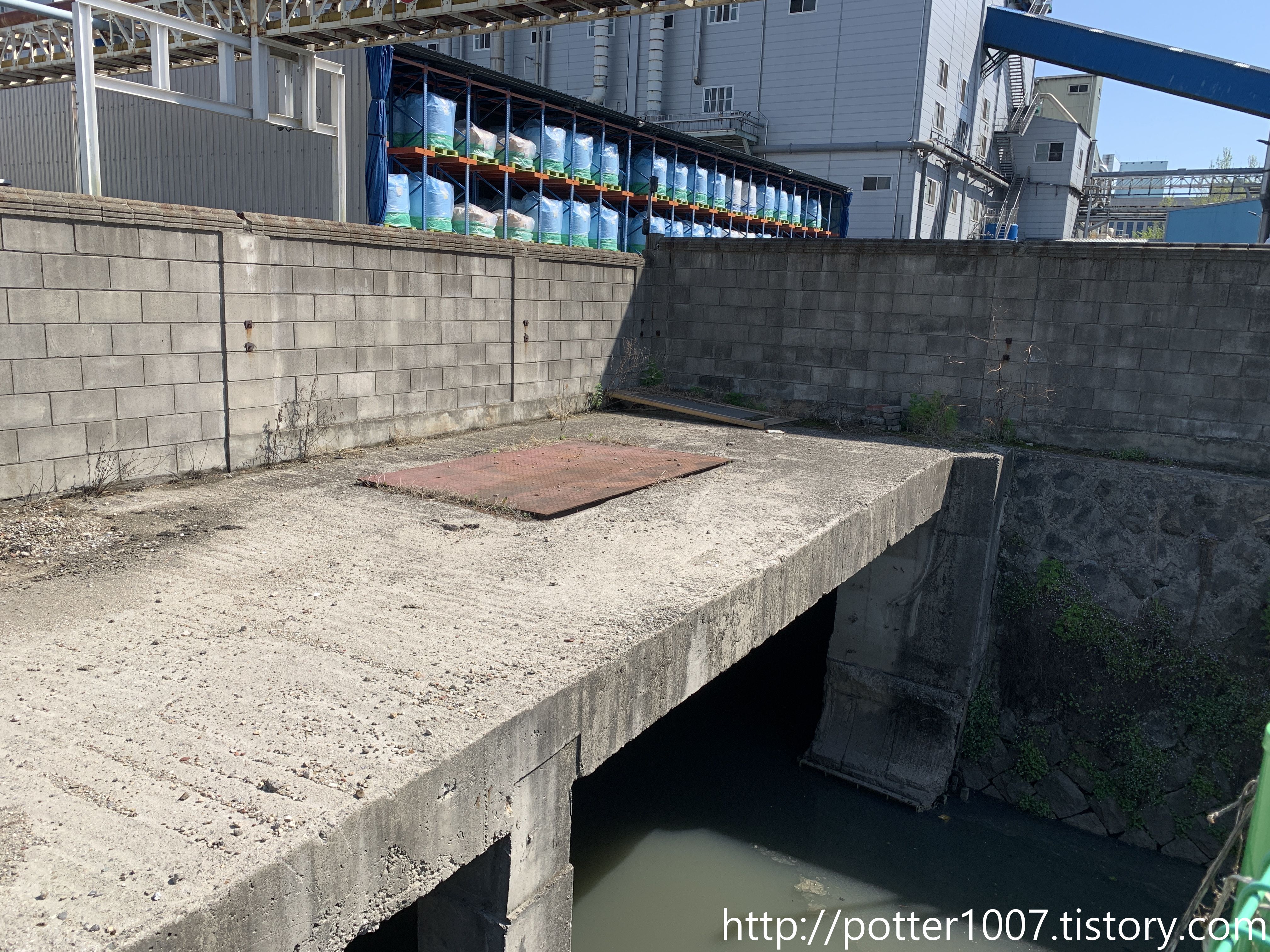 공장을 따라 통과할수는 없으므로, 한참을 우회하여 제일 가까운 하류방향으로 접근하면 이런 모습을 볼수 있습니다.