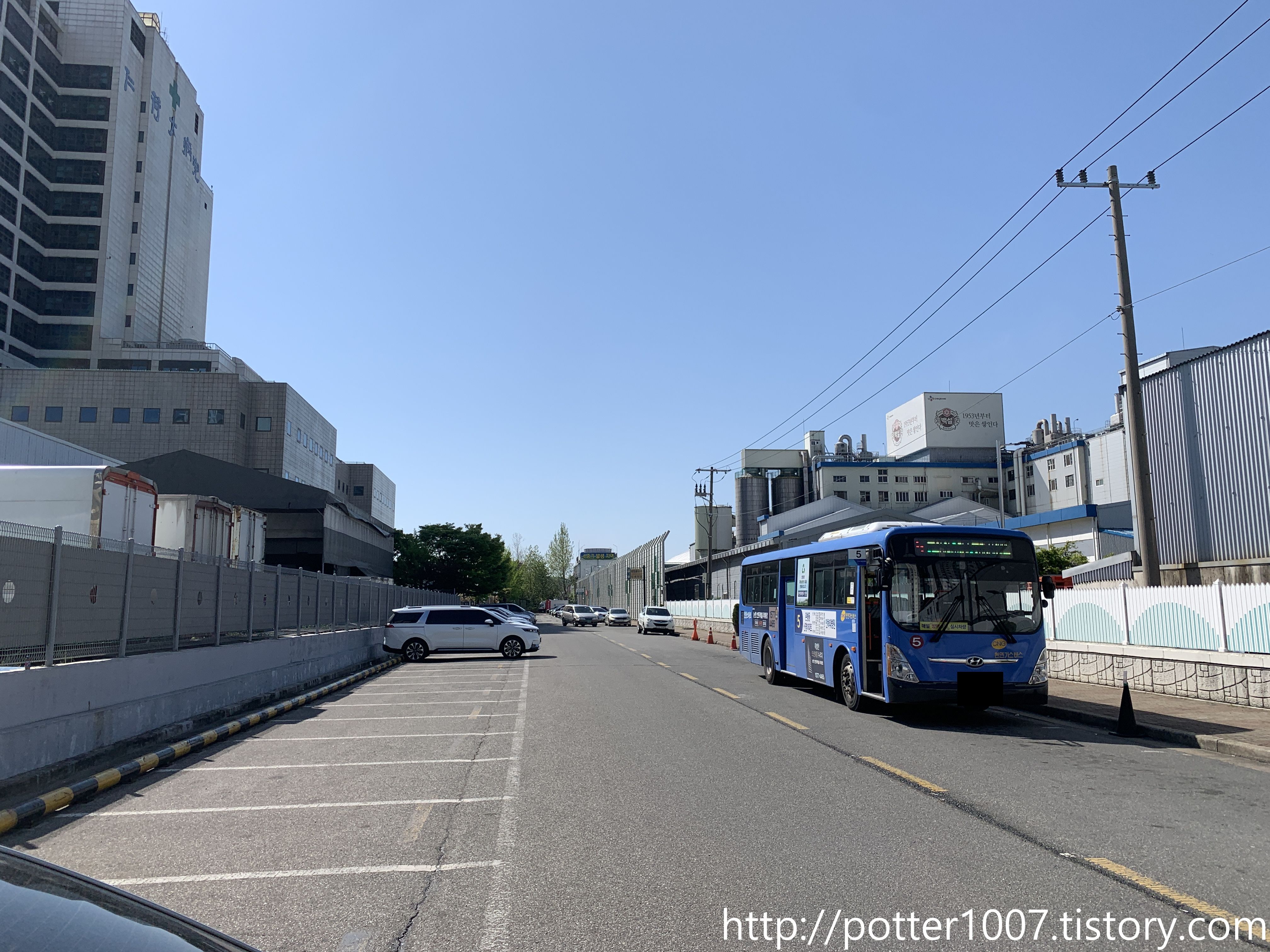 여기서 오른쪽으로 90도 꺾어서 공장(CJ공장)내를 통과하게 됩니다.