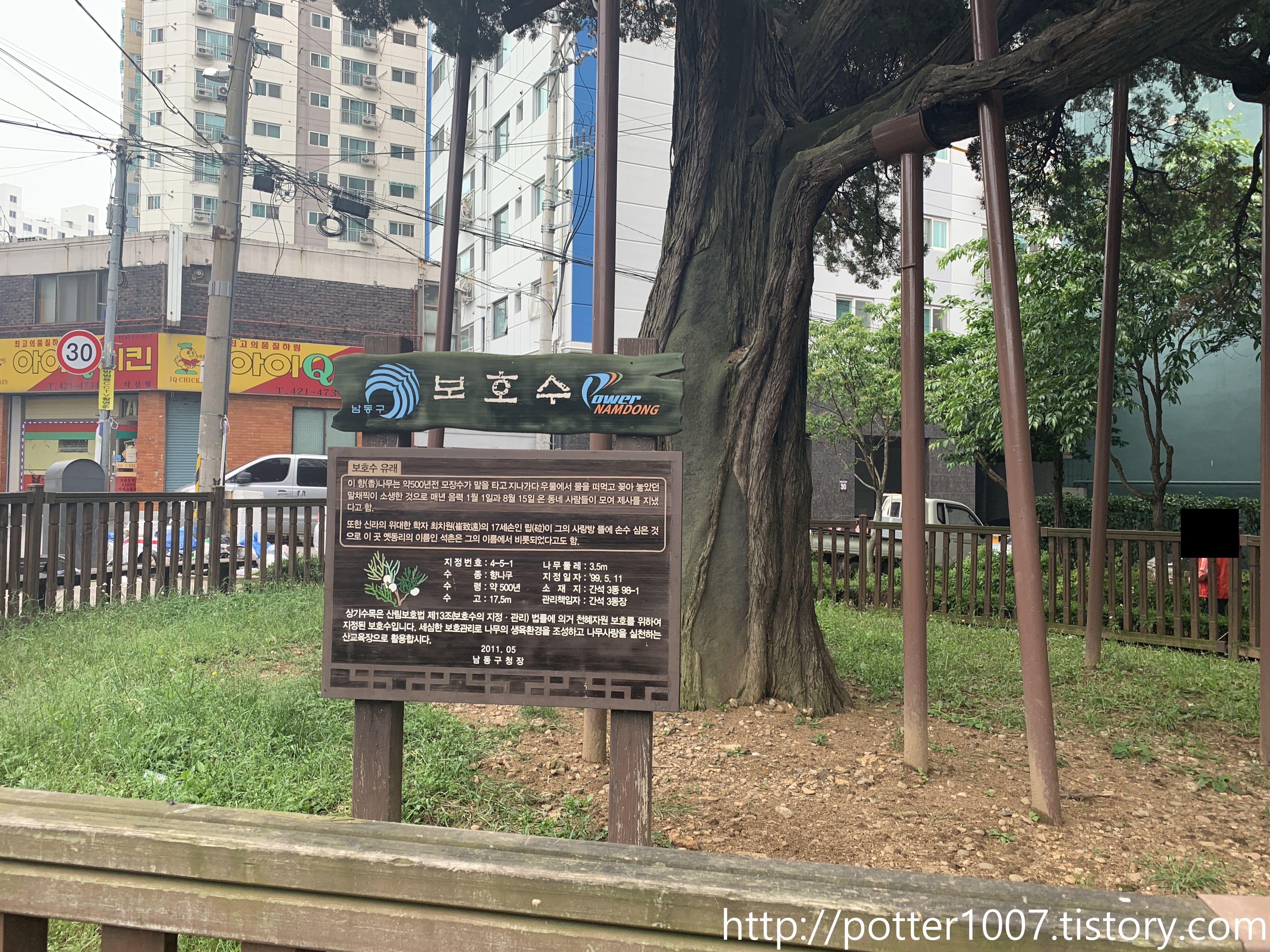 참고로 지도상에도 표시했듯이 중간에 향나무가 보호수로 있는데 나름 큼지막합니다.