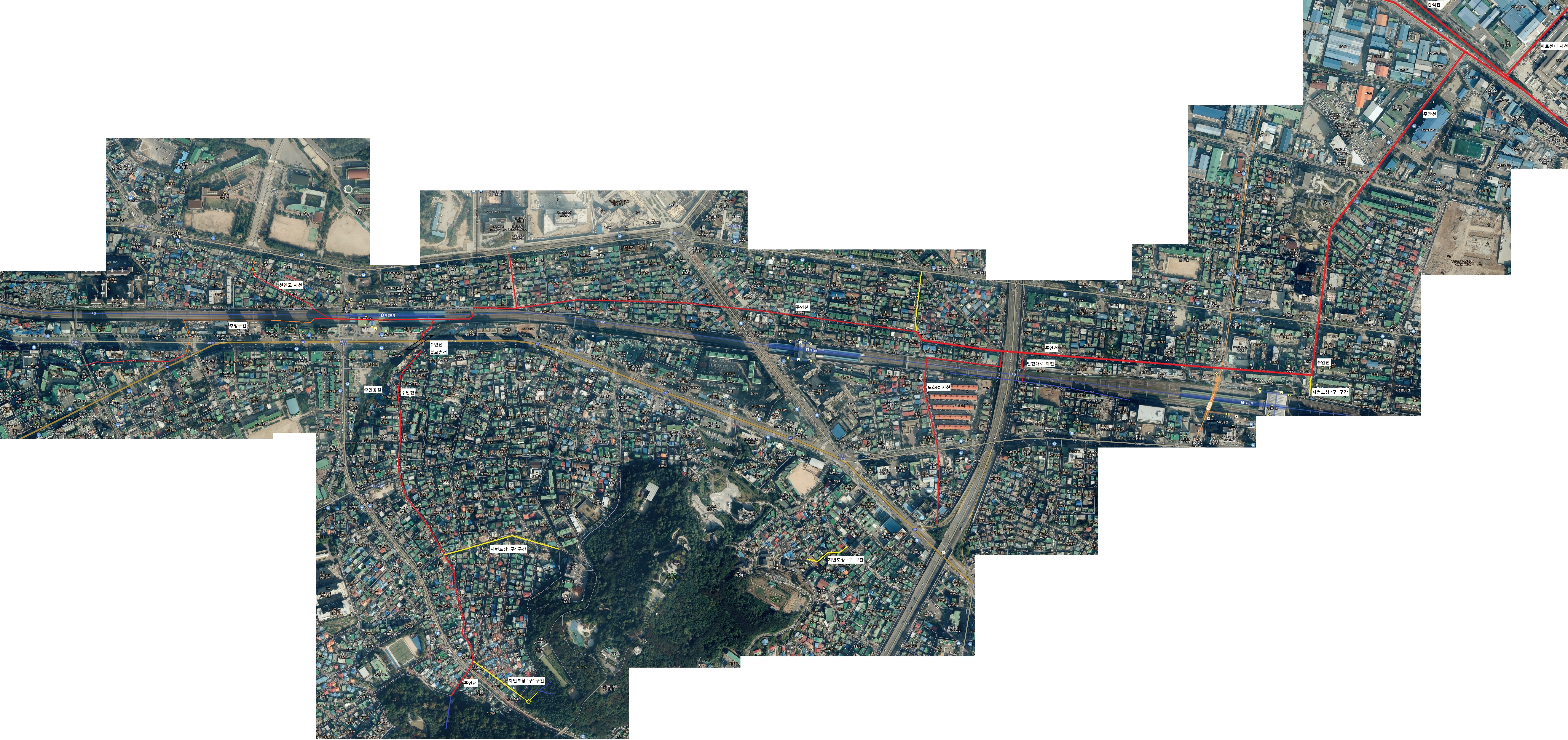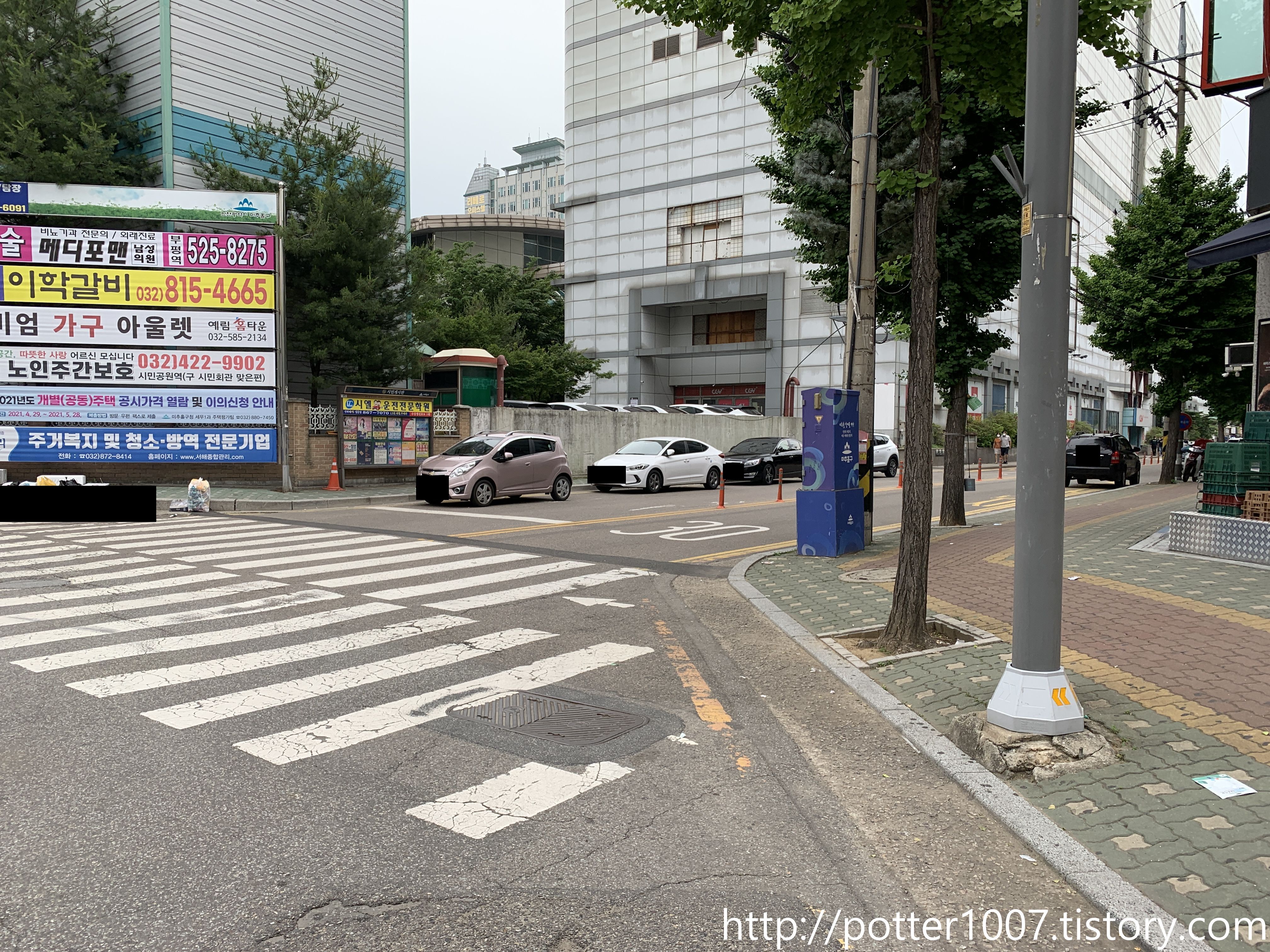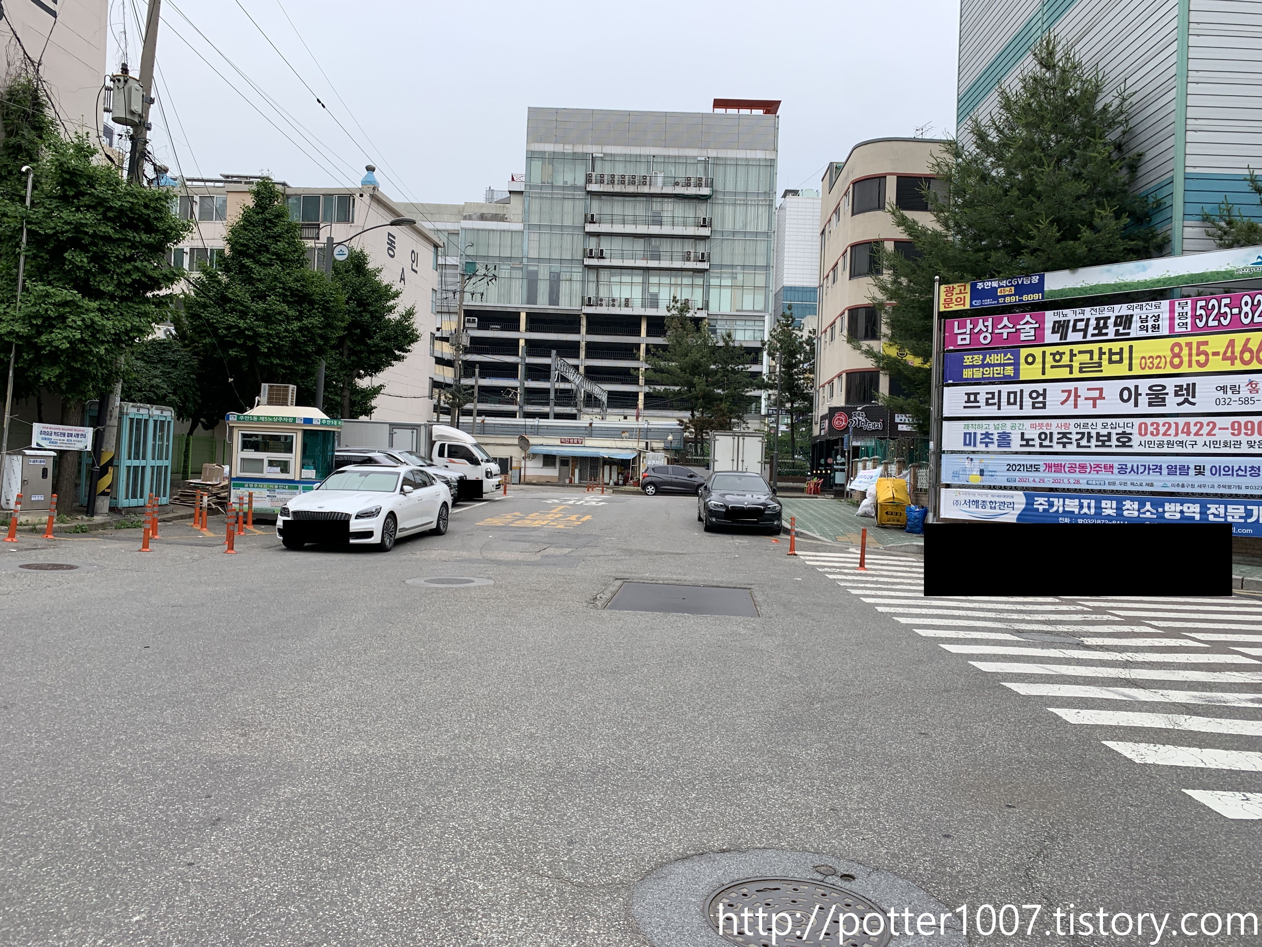 여기에서 주안천은 오른쪽으로 꺾어지지만, 지번도상으로도 그렇고 실제로도 정면에서 박스가 나오기는 합니다. 하지만 이 박스가 1호선(경인선)을 어떻게 넘는지를 알기 어려운데다(사실 위의 산림청 항공사진을 보면 대략적으로 알수는 있습니다.) 이쪽방향으로는 산이 없어서 발원지가 없기 때문에, 이쪽구간의 답사는 따로 하지 않았습니다.