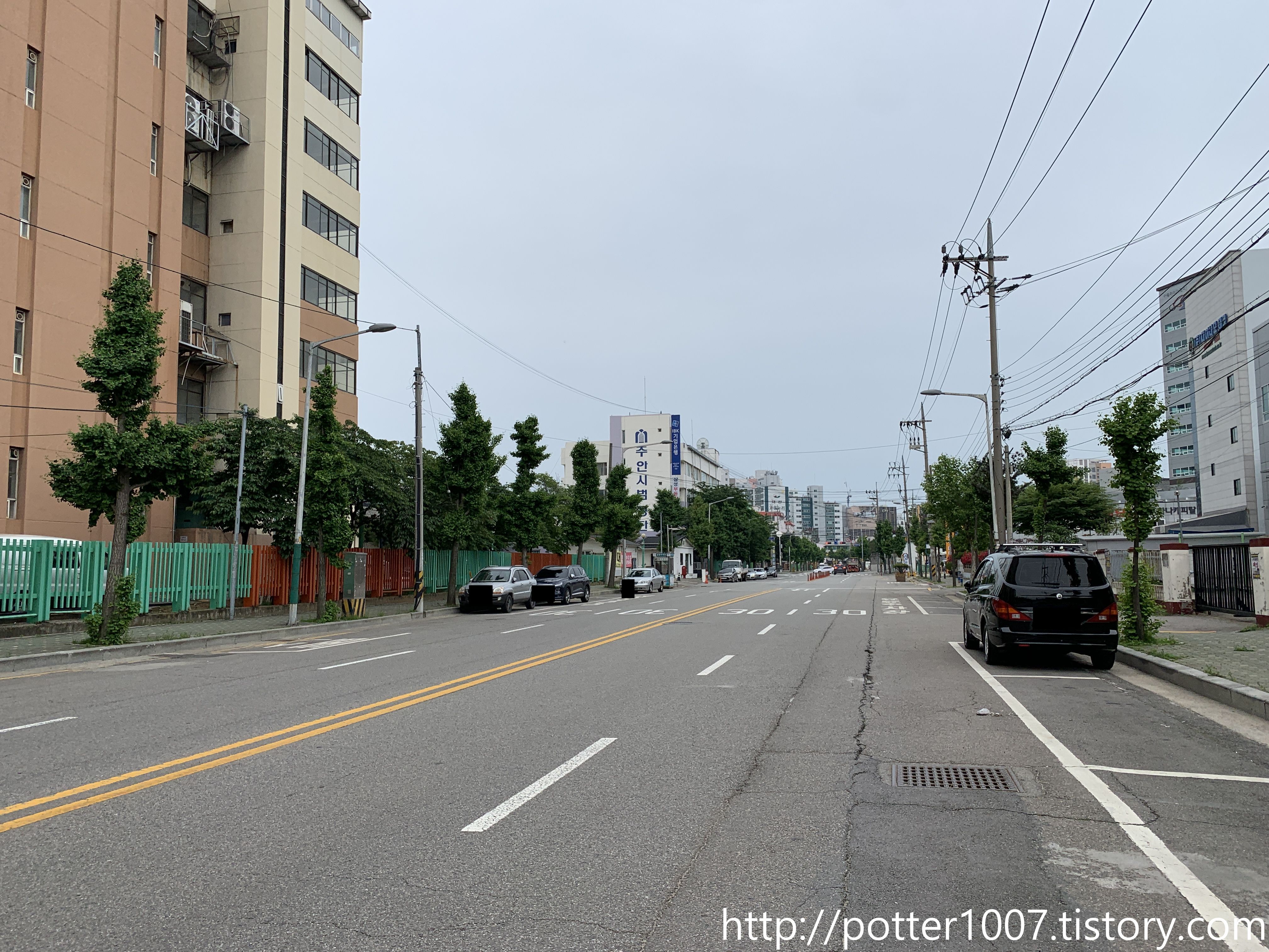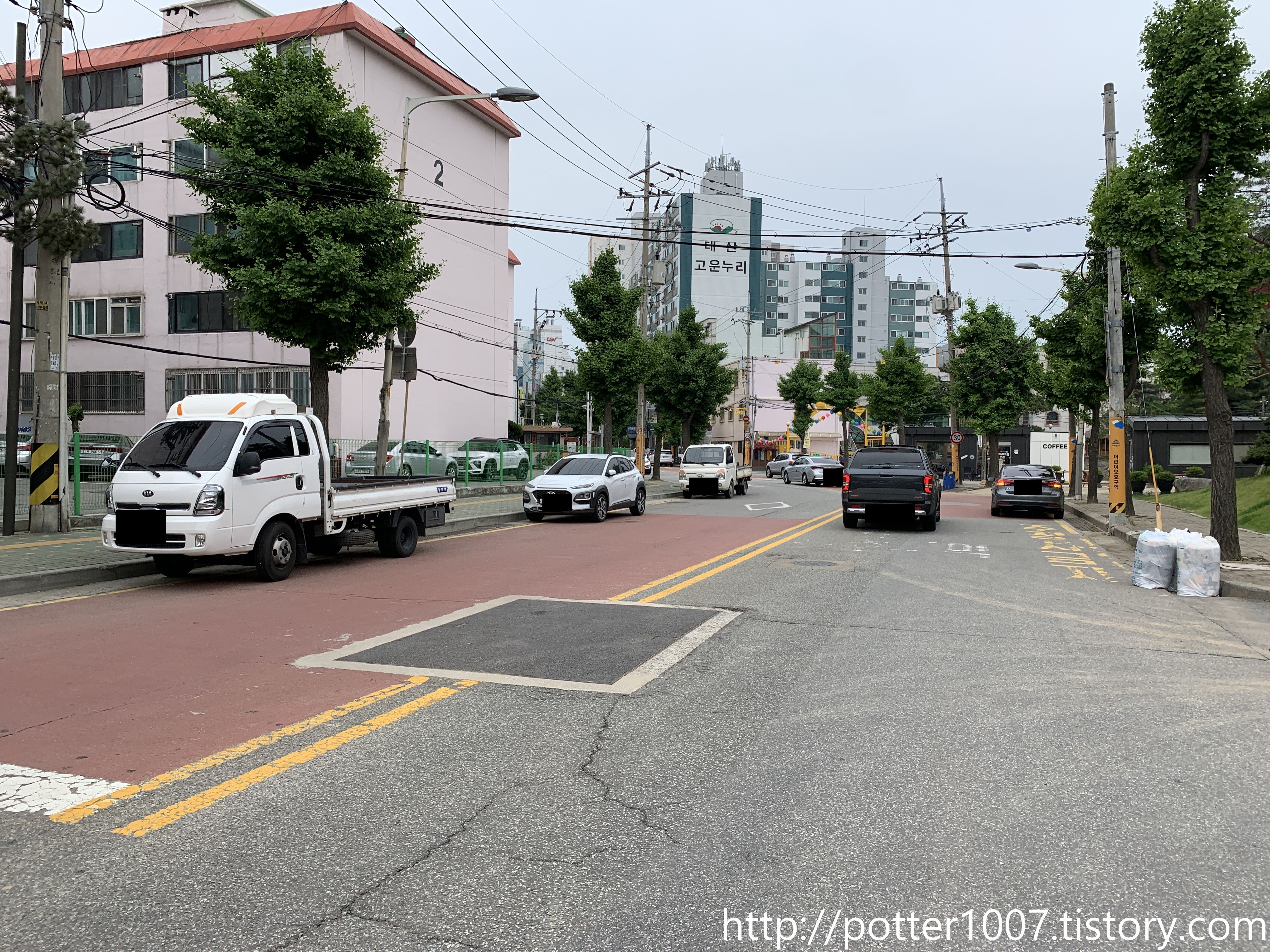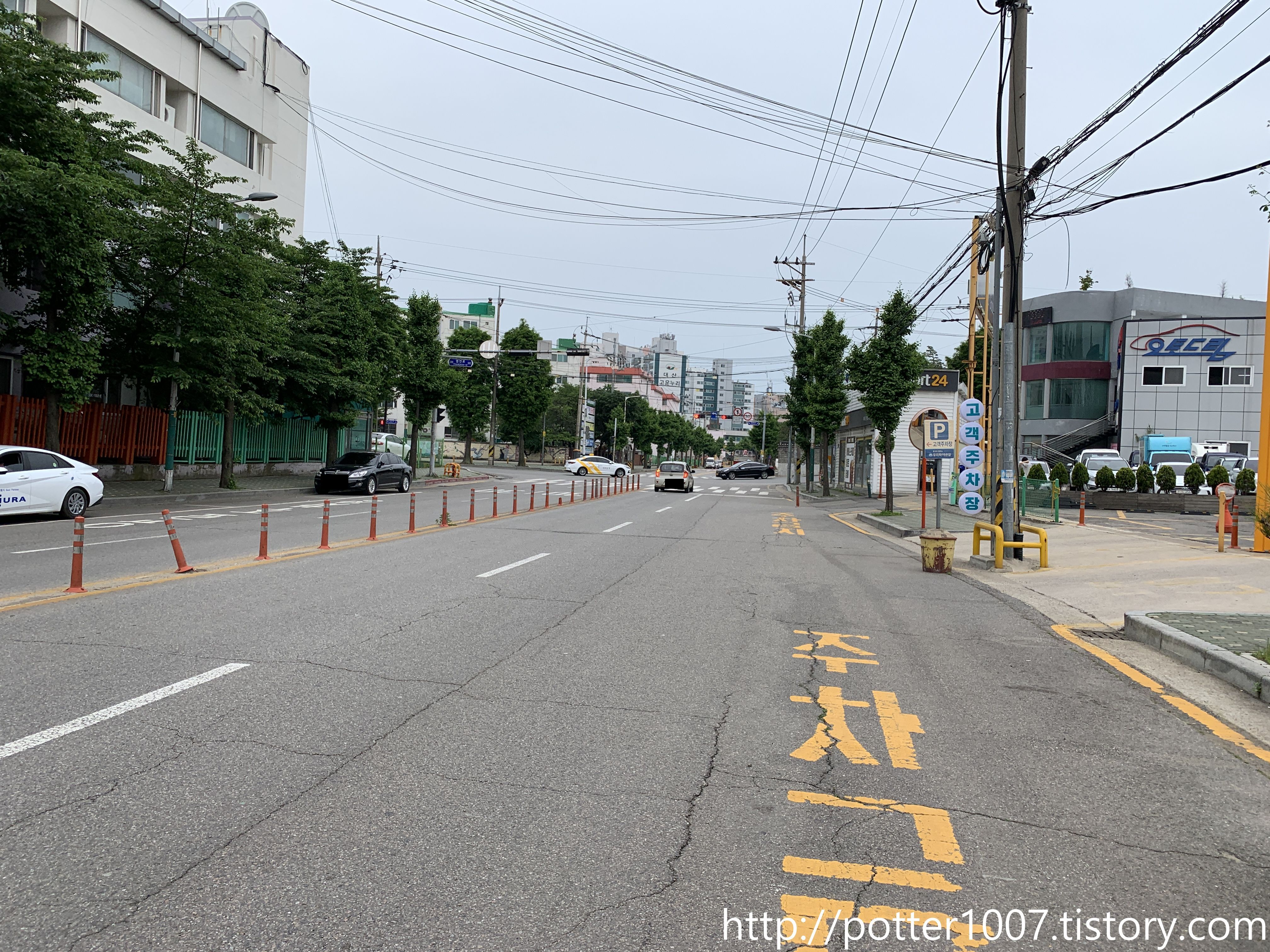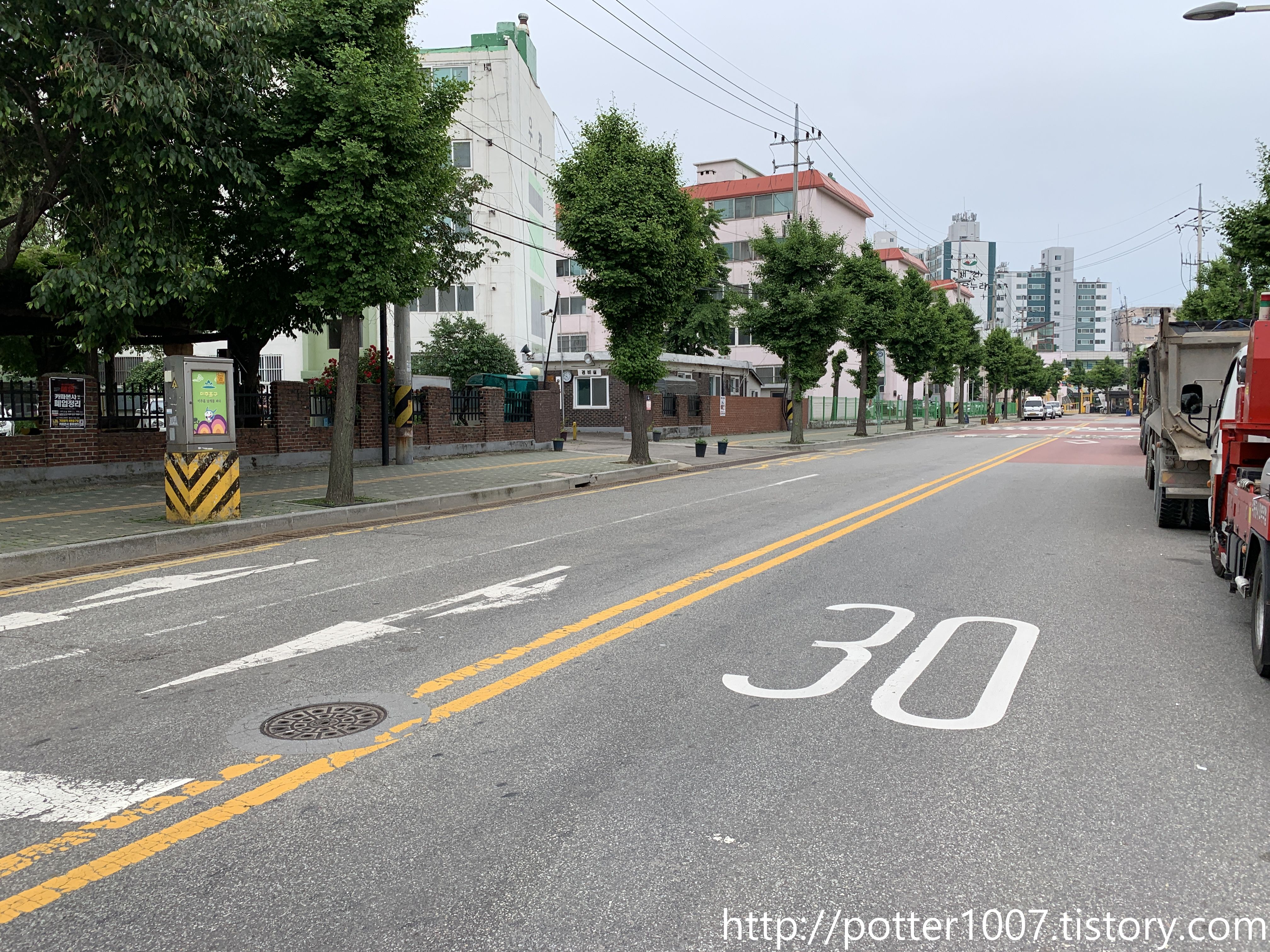 이제는 흰색점선도 없어진 3-4차선폭의 도로입니다.