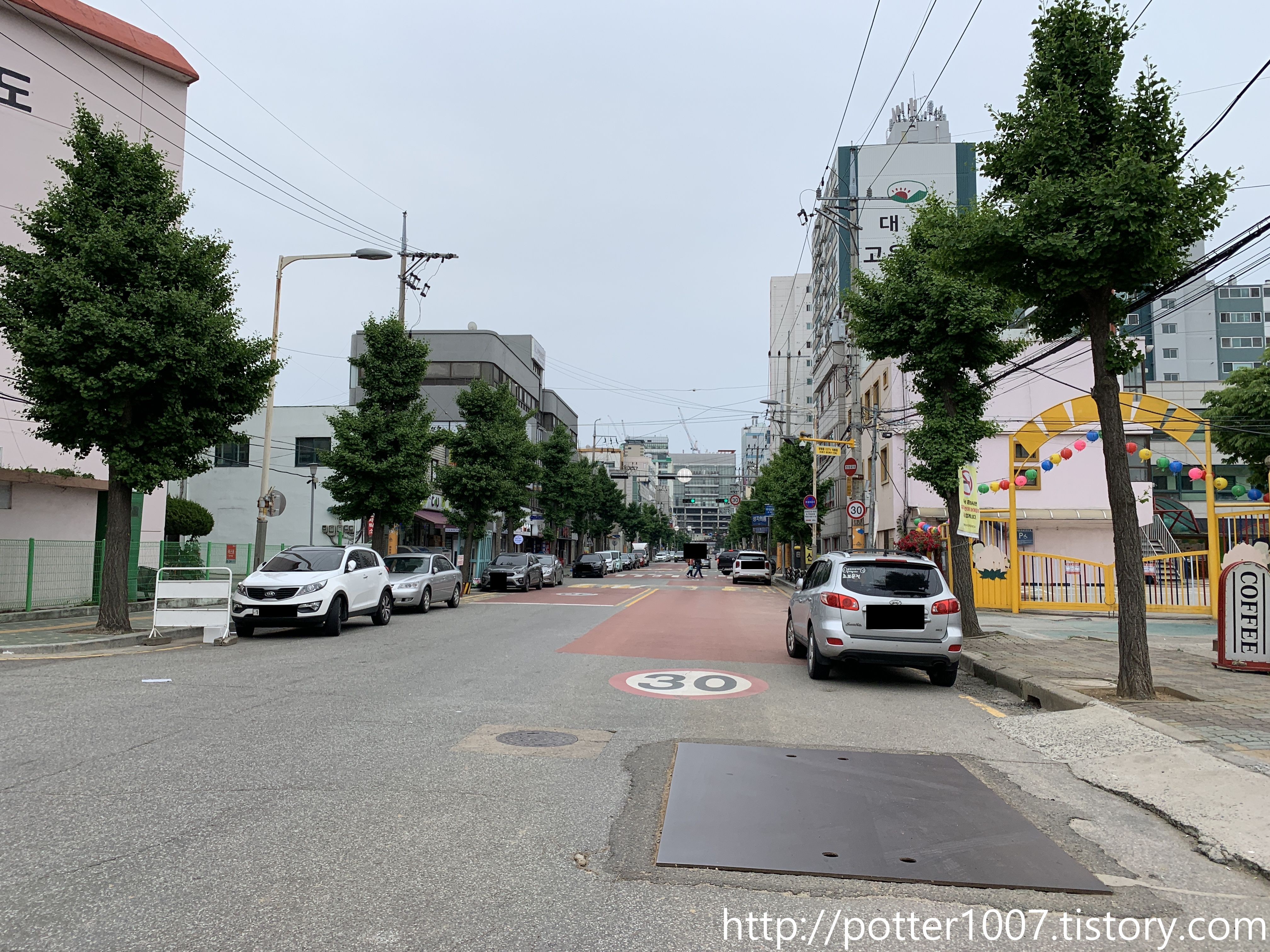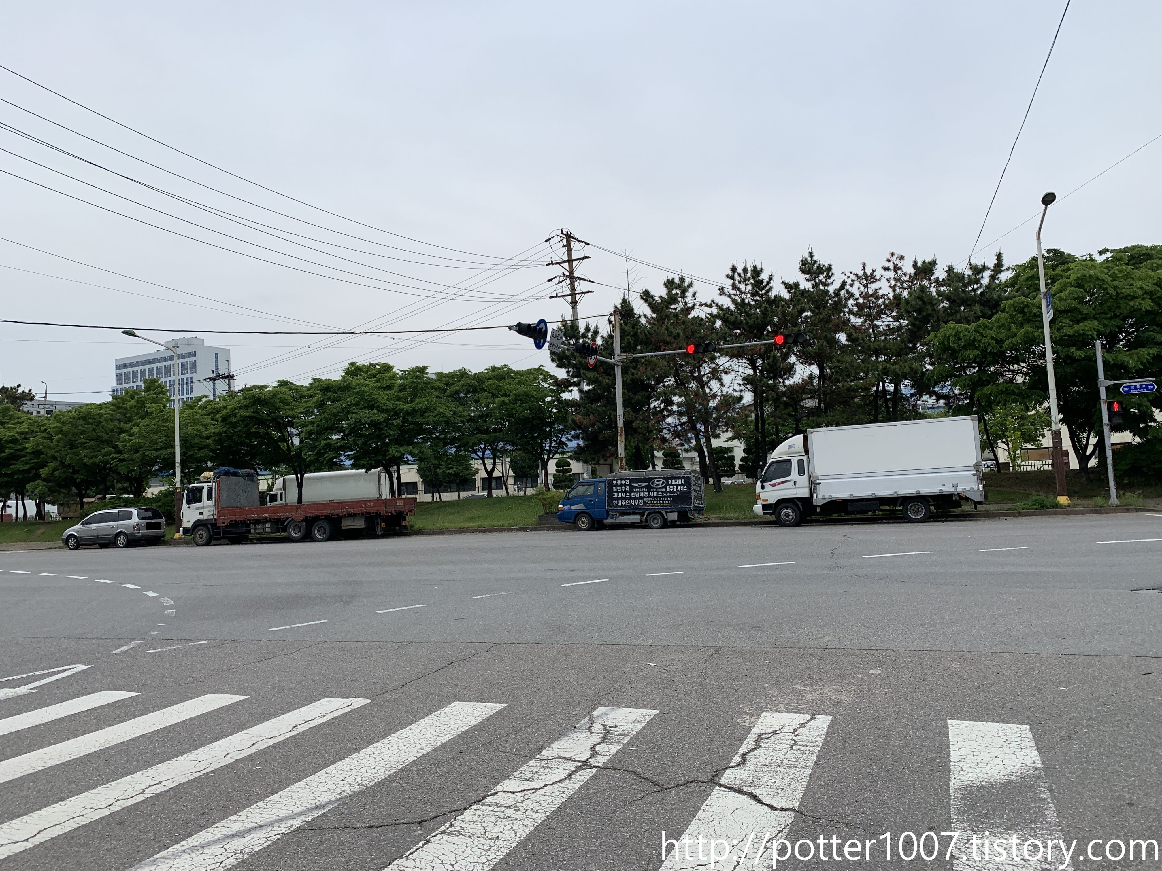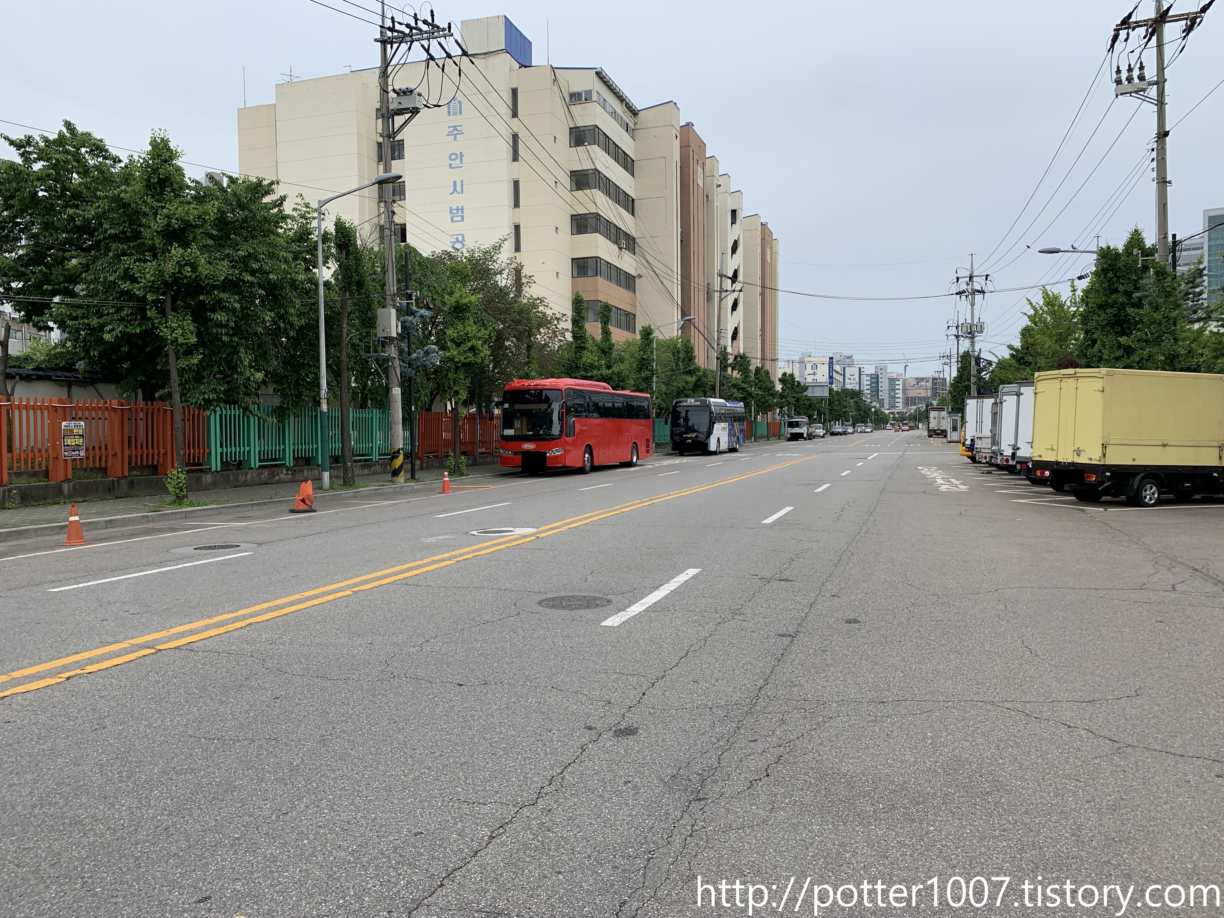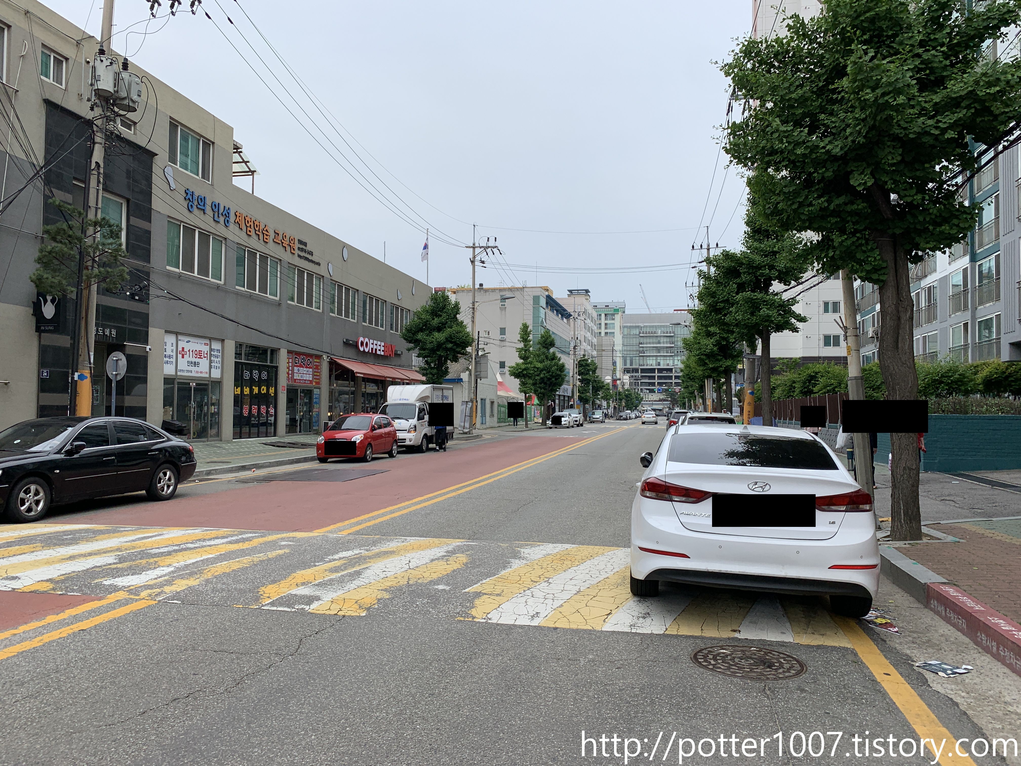 이제는 흰색점선도 없어진 3-4차선폭의 도로입니다.